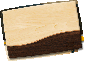 Amazing 18 x 12 inches cutting board. These boards consist of two or three different essences of wood: maple, cherry and black walnut. The combination of these three species gives you access to 12 different configurations.